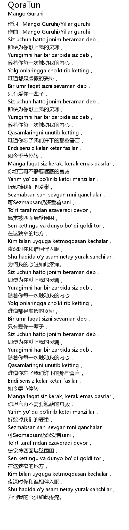 | 作词 : Mango Guruhi/Yillar guruhi | |
