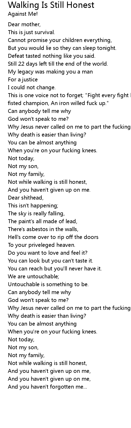 Not while walking is still honest, |