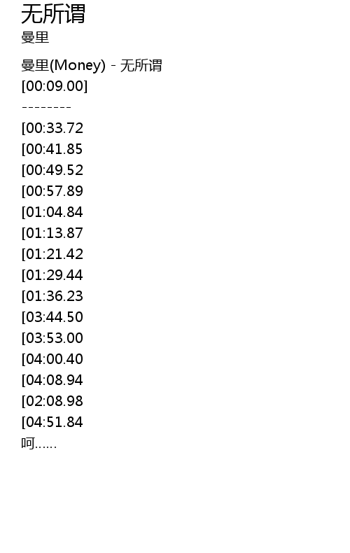 | [00:03.00] | 曼里(Money) - 无所谓 |