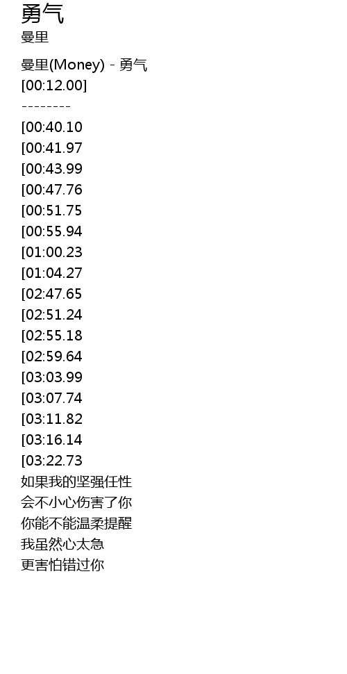 | [00:03.00] | 曼里(Money) - 勇气 |