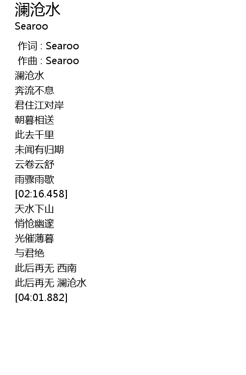 | [03:45.298] | cǐ hòu zài wú lán cāng shuǐ |