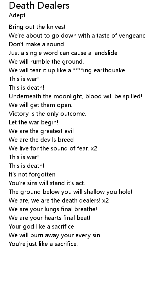 We are, we are the death dealers! x2 |