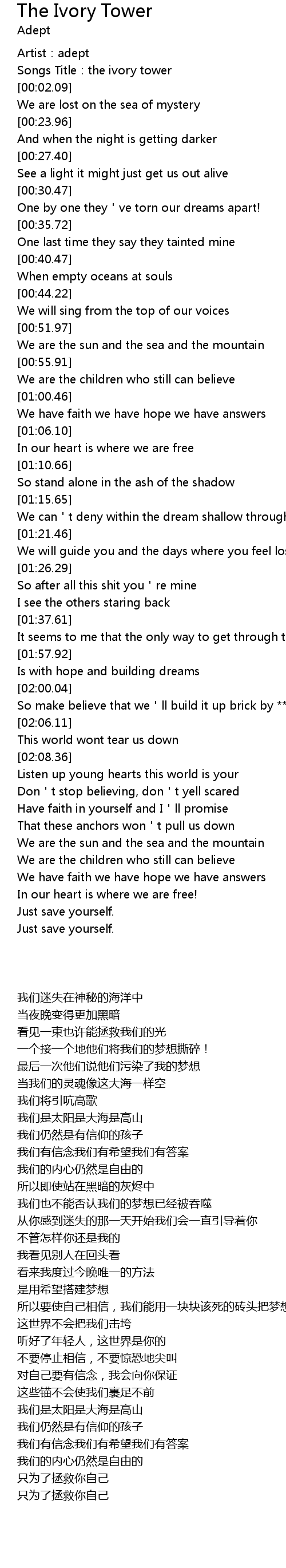 | [02:10.10] | Don't stop believing, don't yell scared |