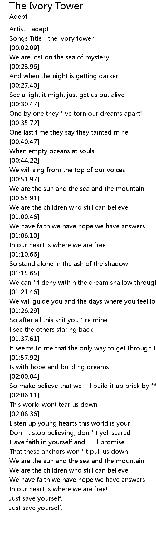 | [02:10.10] | Don t stop believing, don t yell scared |
