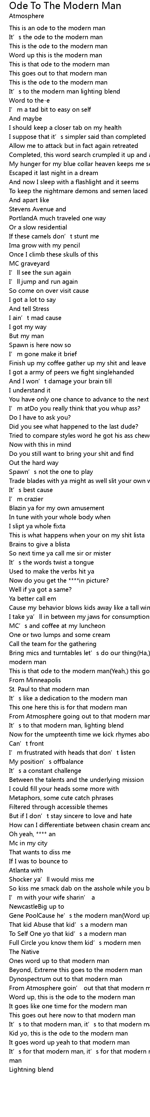 | Kid yo, this is the ode to the modern man | |
