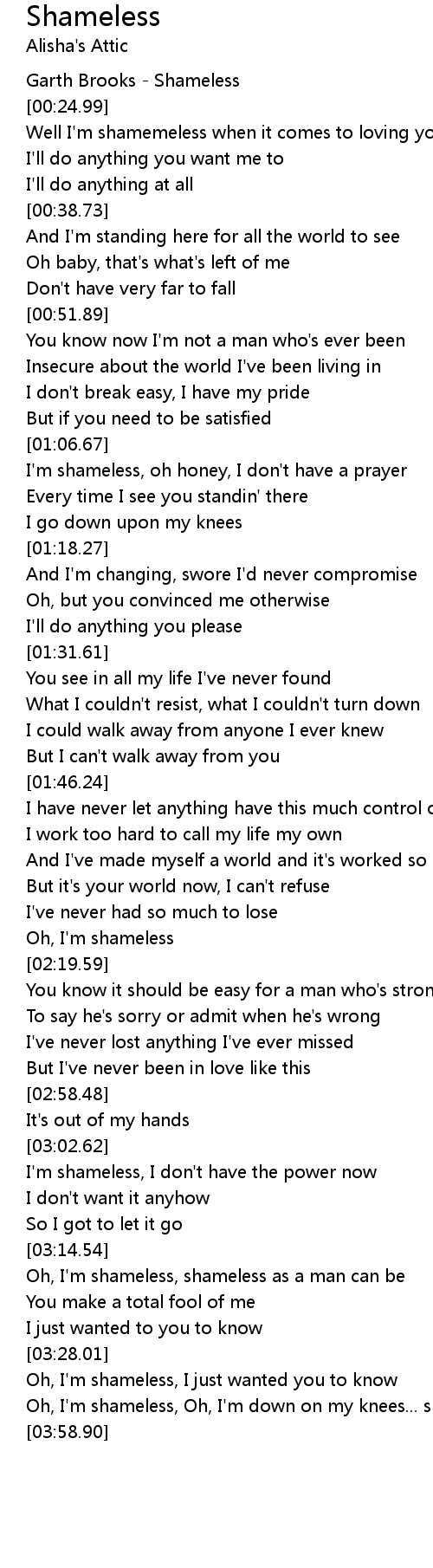 Oh, I'm shameless, Oh, I'm down on my knees... shameless |