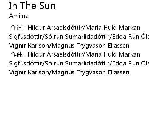| [00:00.000] | 作词 : Hildur Ársaelsdóttir/Maria Huld Markan Sigfúsdóttir/Sólrún Sumarlidadóttir/Edda Rún Ólafsdóttir/Gudmundur Vignir Karlson/Magnús Trygvason Eliassen |