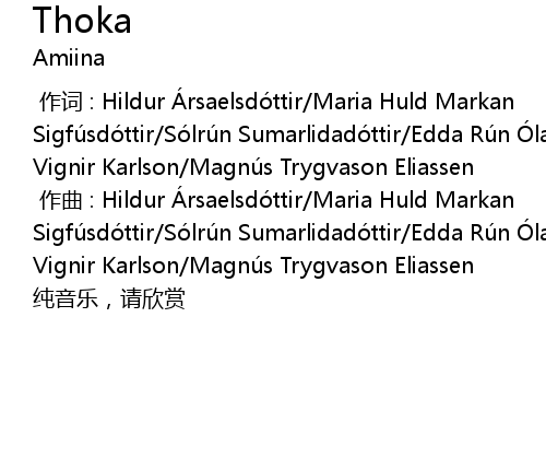 [00:00.000] zuò cí : Hildur Á rsaelsdó ttir Maria Huld Markan Sigfú sdó ttir Só lrú n Sumarlidadó ttir Edda Rú n Ó lafsdó ttir Gudmundur Vignir Karlson Magnú s Trygvason Eliassen