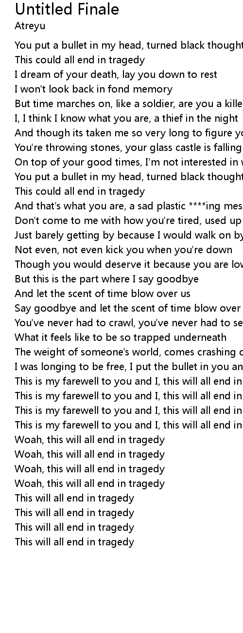 This is my farewell to you and I, this will all end in tragedy |