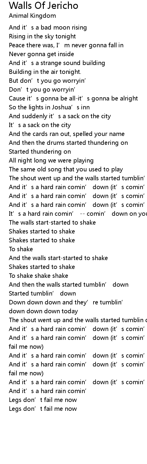 | The shout went up and the walls started tumblin down | |