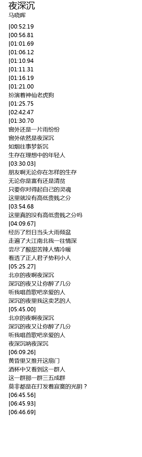 | [05:26.00] | 北京的夜啊夜深沉 |