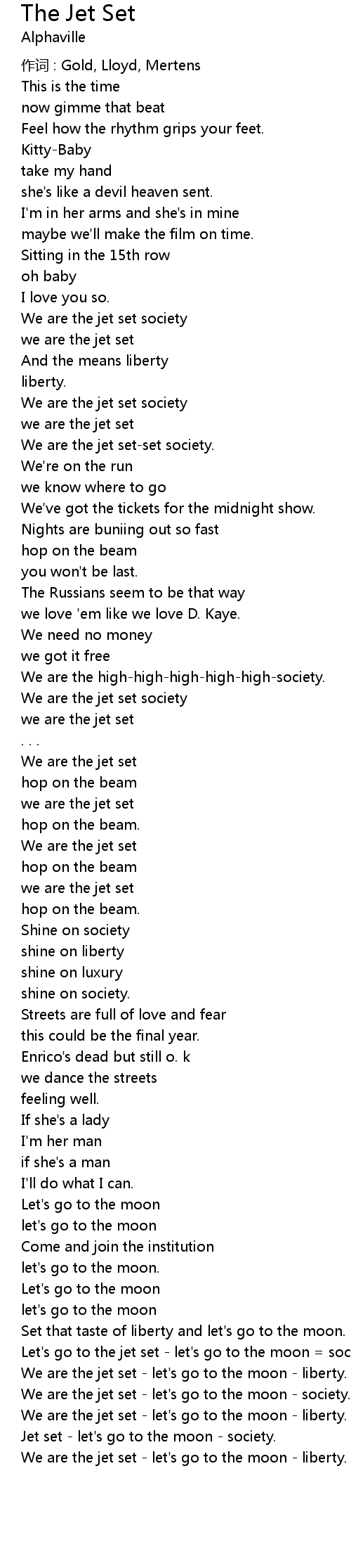 | We are the jet set - let's go to the moon - liberty. . . . |