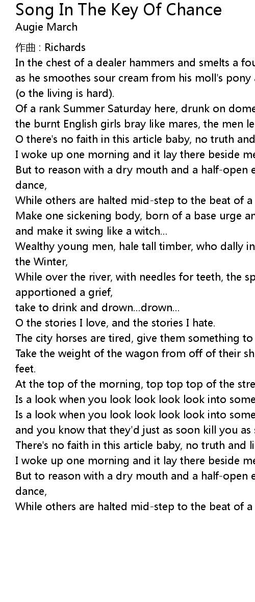 | While others are halted midstep to the beat of a song in the key of chance. | |