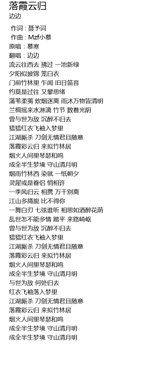 | [00:01.000] | 作曲 : Mzf小慕 |
