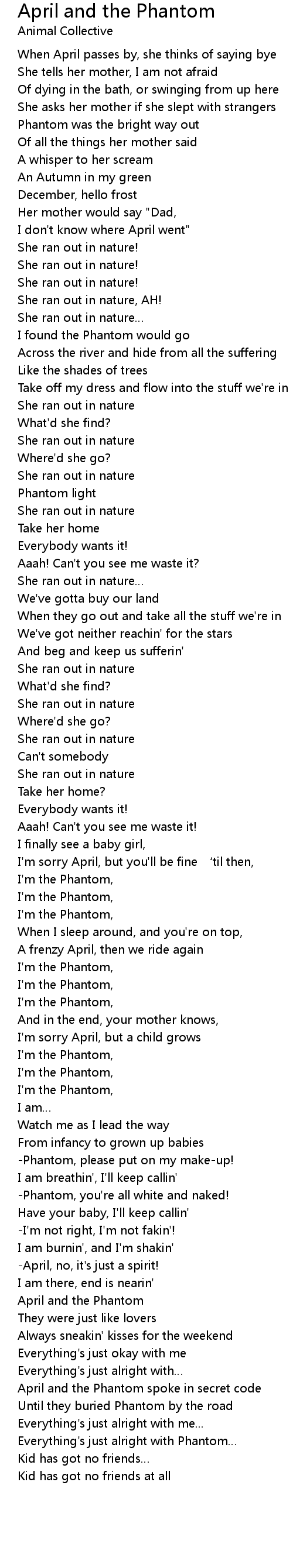 | Song | April and the Phantom |