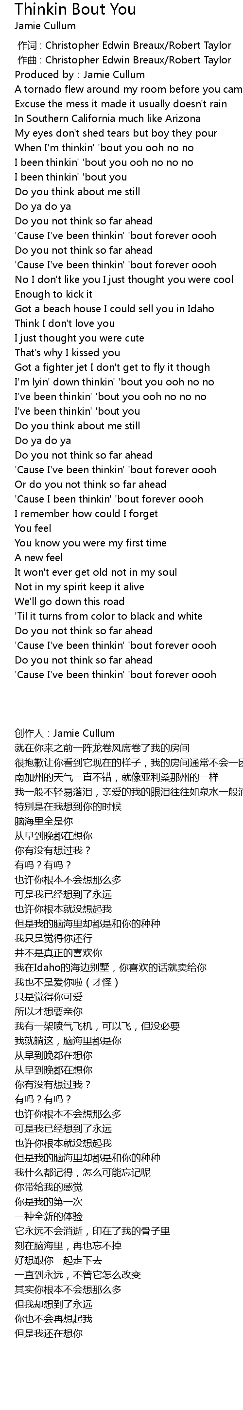 | [00:33.03] | I been thinkin' ' bout you ooh no no no |
