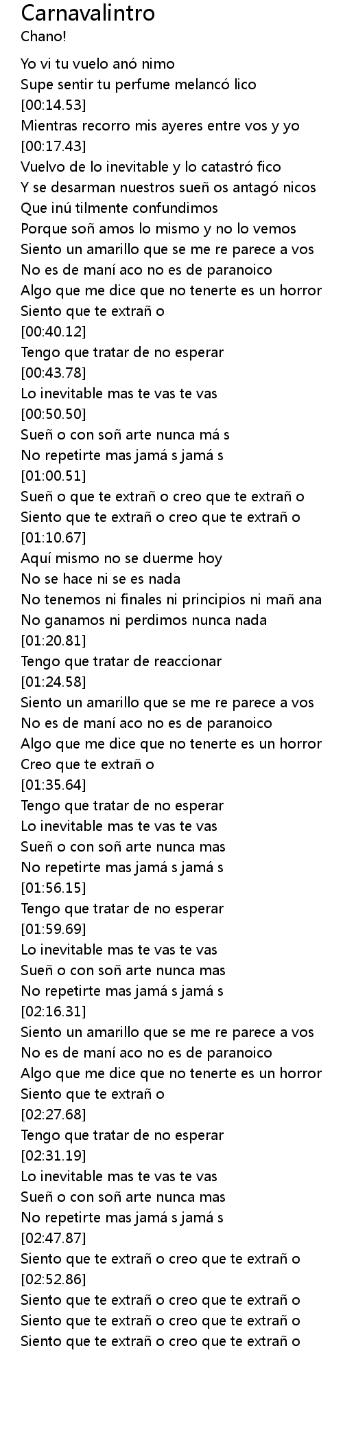 | [02:53.44] | Siento que te extrañ o creo que te extrañ o |