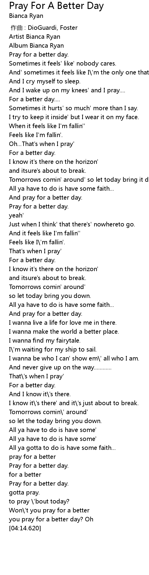 | [04:10.180] | you pray for a better day? Oh |