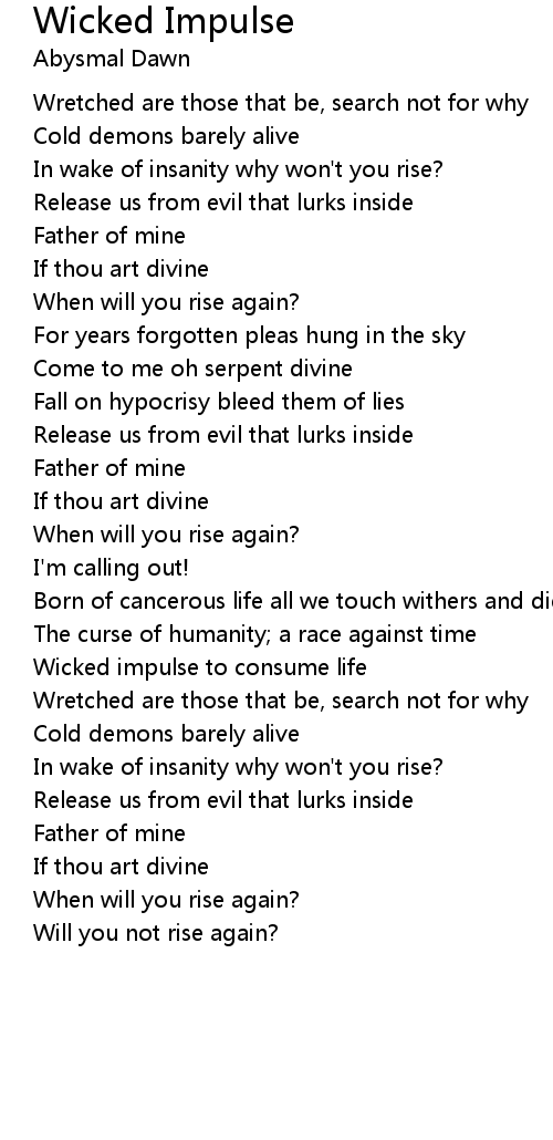 Wicked impulse to consume life |