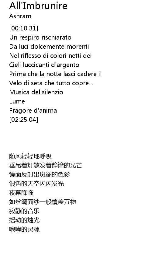 | [00:34.12] | Da luci dolcemente morenti |