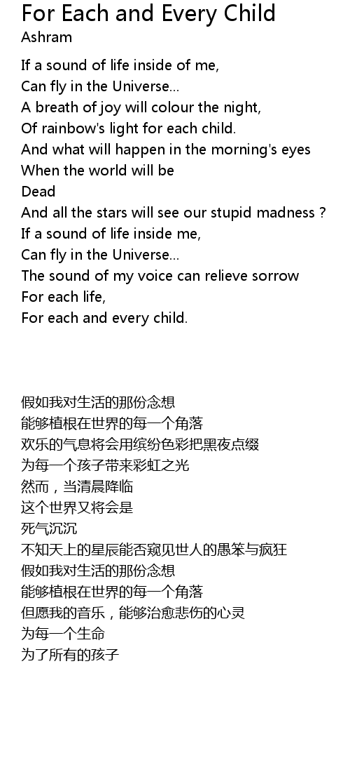 | Song | For Each and Every Child |