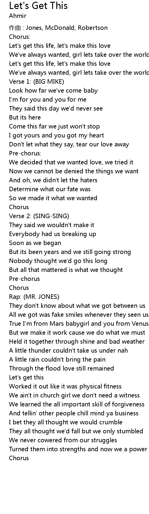 | Let's get this life, let's make this love | |
