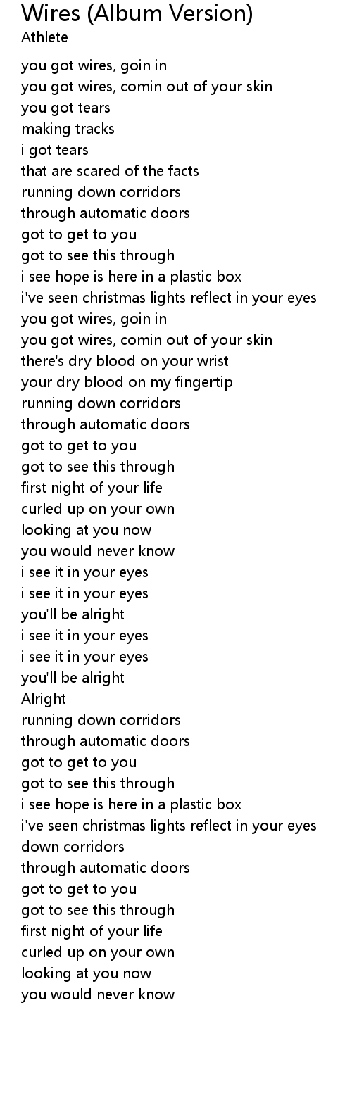| [00:07.45] | you got wires, goin in |