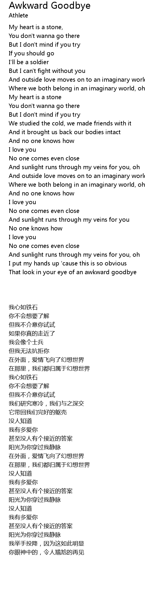 That look in your eye of an awkward goodbye |