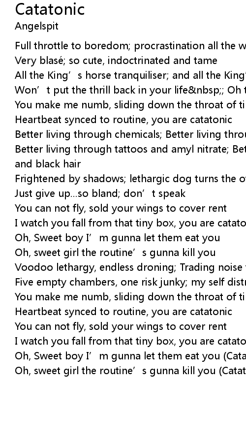 | Oh, sweet girl the routine’s gunna kill you (Catatonic!) |