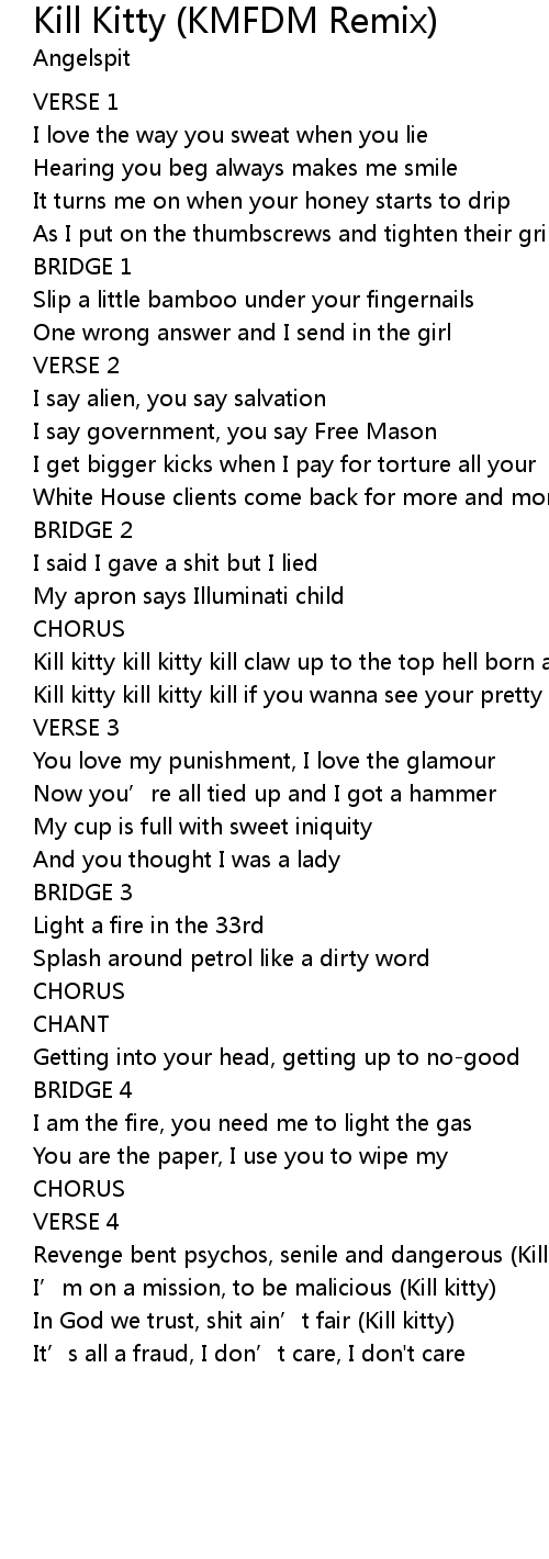 | I' m on a mission, to be malicious Kill kitty | |