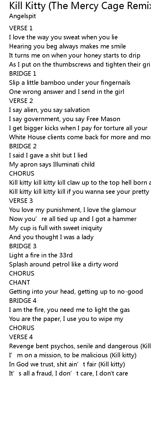 | Kill kitty kill kitty kill if you wanna see your pretty face on a dollar bill | |