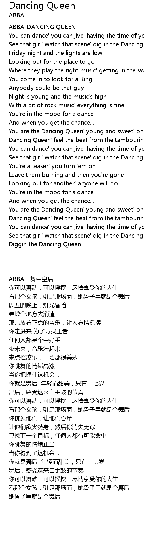 | [00:29.02] | See that girl' watch that scene' dig in the Dancing Queen |