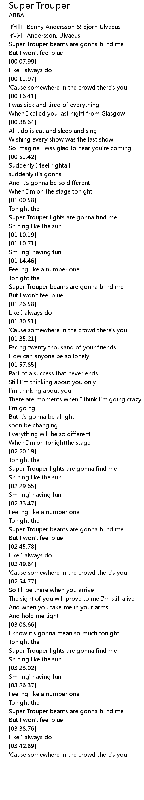 | [03:16.15] | Super Trouper lights are gonna find me |