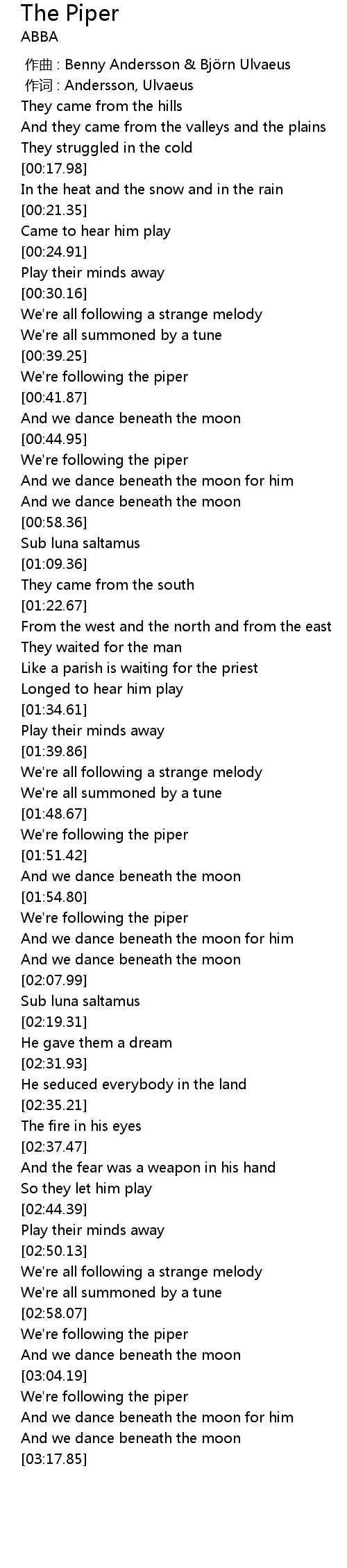| [00:00.00] | zuo qu : Benny Andersson Bj rn Ulvaeus |