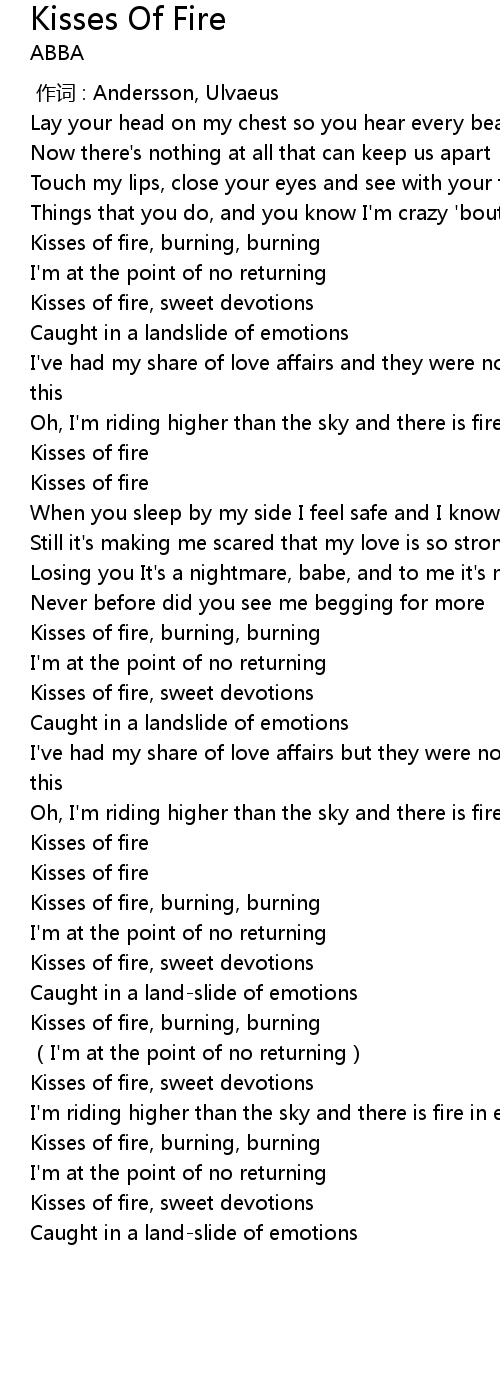 | [00:38.73] | Kisses of fire, burning, burning |