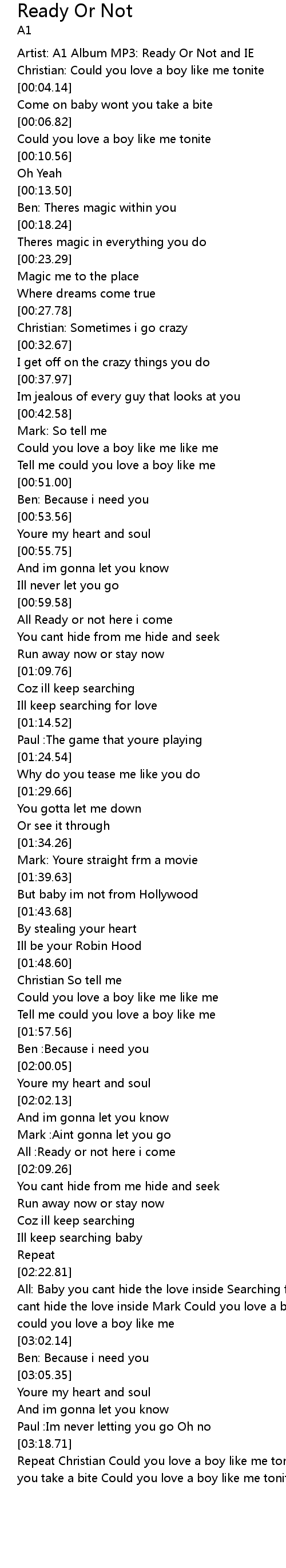 Artist: A1 Album MP3: Ready Or Not and IE |