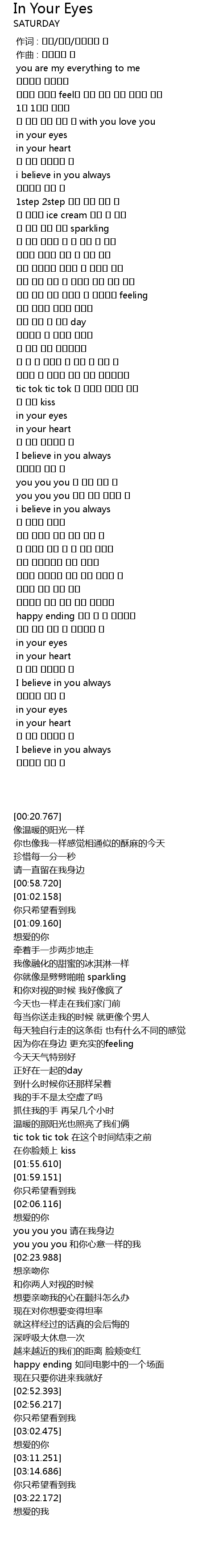 | [01:24.114] | 니 눈이 마주칠 때 난 미칠 것 같아 |