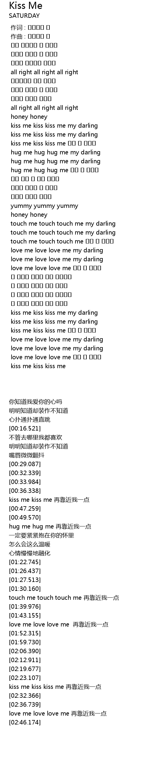 | [02:26.397] | kiss me kiss kiss me 내게 더 가까이 |