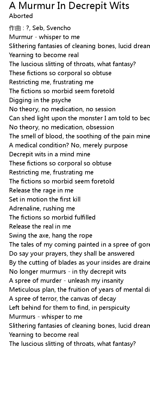 | Song | A Murmur In Decrepit Wits |