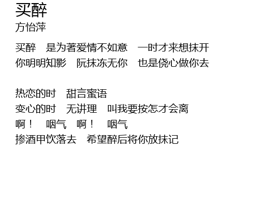 | 买醉 是为著爱情不如意 一时才来想抹开 | |