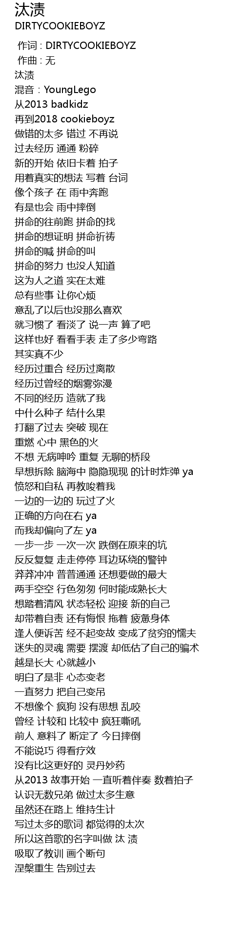 | [02:10.176] | 所以这首歌的名字叫做 汰 渍 |