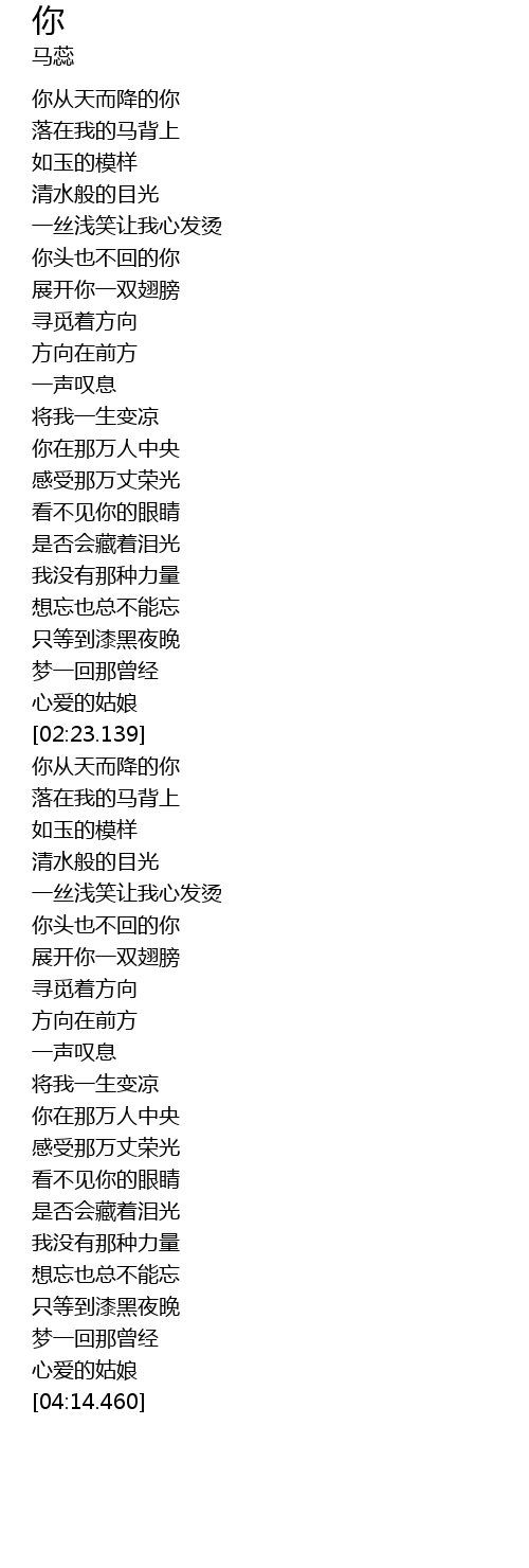 | [02:35.0] | 你从天而降的你 |