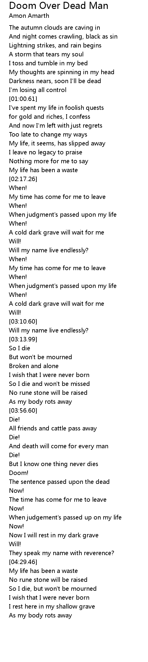 Darkness nears, soon I'll be dead |