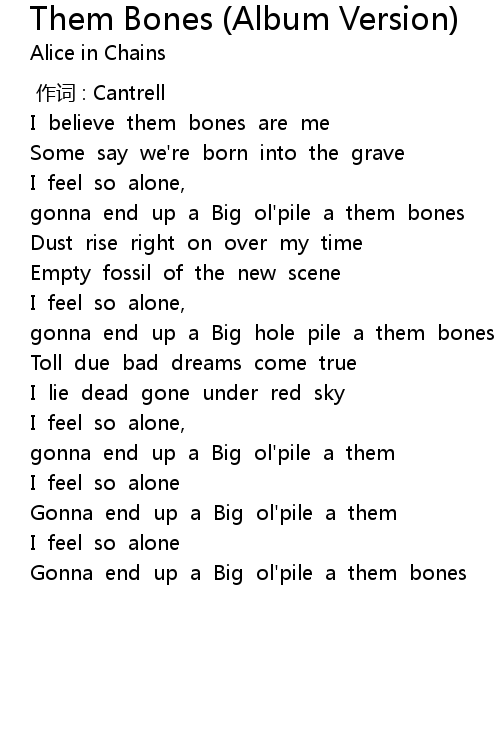 | [00:13.315] | I believe them bones are me |