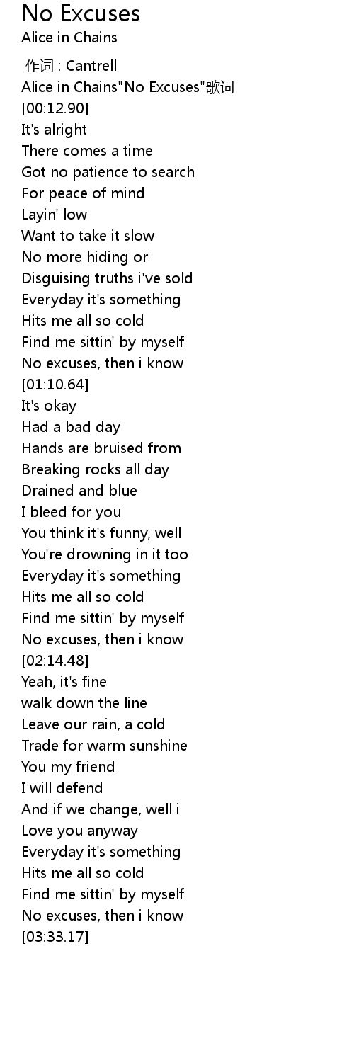 | [00:07.20] | Alice in Chains"No Excuses"歌词 |