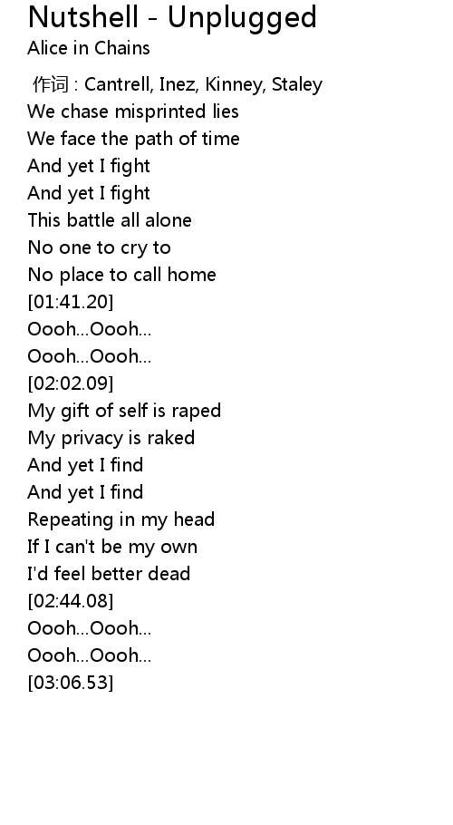 | [00:00.00] | 作词 : Cantrell, Inez, Kinney, Staley |