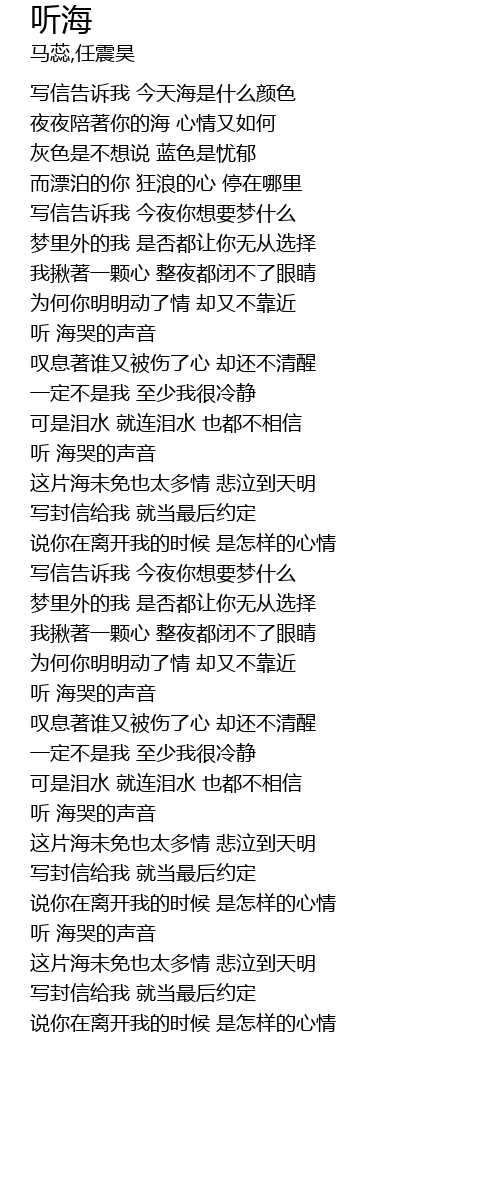| [00:23.470] | 写信告诉我 今天海是什么颜色 |