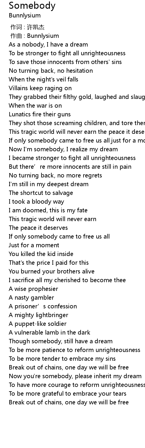 | [03:49.725] | Now you' re somebody, please inherit my dream |