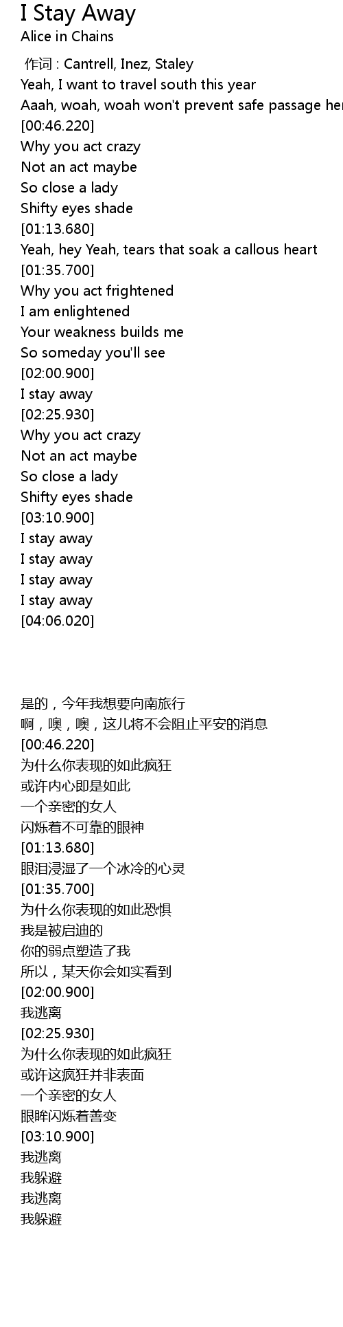 | [00:00.00] | 作词 : Cantrell, Inez, Staley |