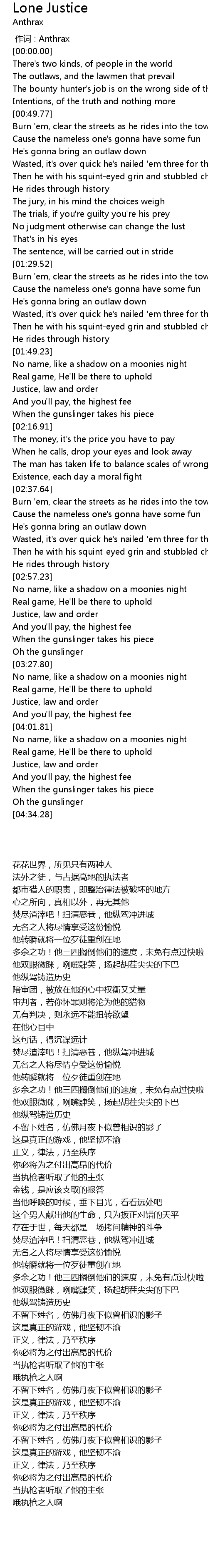 | [00:00.00] | 作词 : Anthrax |